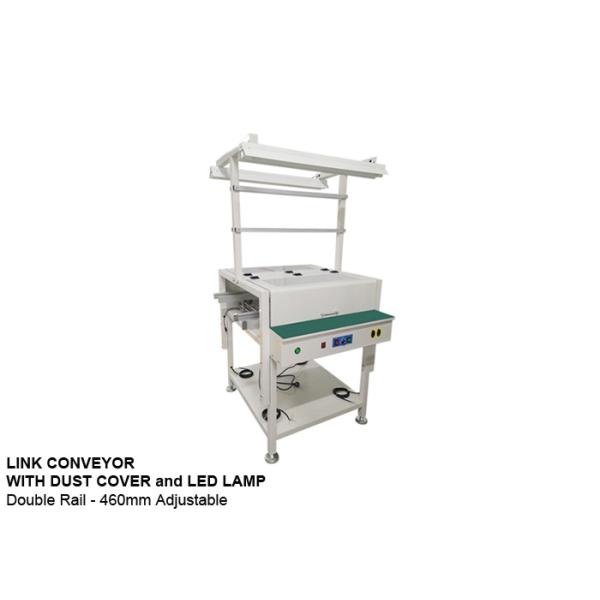 Description : Dual-Rail Conveyor with Dust Cover and LED Light - 460mm Adjustable Width